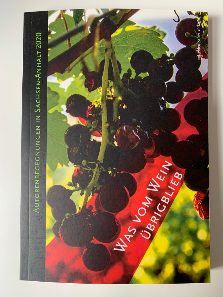 Gerade ist eine Kurzgeschichte von mir mit dem Titel „Jurmala (Wespenstiche)“ in der Anthologie „Was vom Wein übrigblieb – Autorenbegegnungen in Sachsen-Anhalt 2020“ beim Mitteldeutschen Verlag erschienen. Ganz besonders möchte ich André Schinkel danken, der meine letzten Änderungen noch berücksichtigt hat, alles lektoriert und betreut hat. Entstanden ist die fiktionale Kurzgeschichte in Sonneck bei der Autorenbegegnung 2020. Es ist jedes Mal ein wunderschönes Wochenende mit den jahrelang vertrauten Dichter*innen und Schreiberlingen. Dieses Mal habe ich die Lesung im „Anisium“ moderiert, die letzten Jahre auch schon mitgelesen. Ich mag Sonneck mit seinen Weinbergen, seinen Wäldern und Feldern. Eine schöne Tagungsstätte.