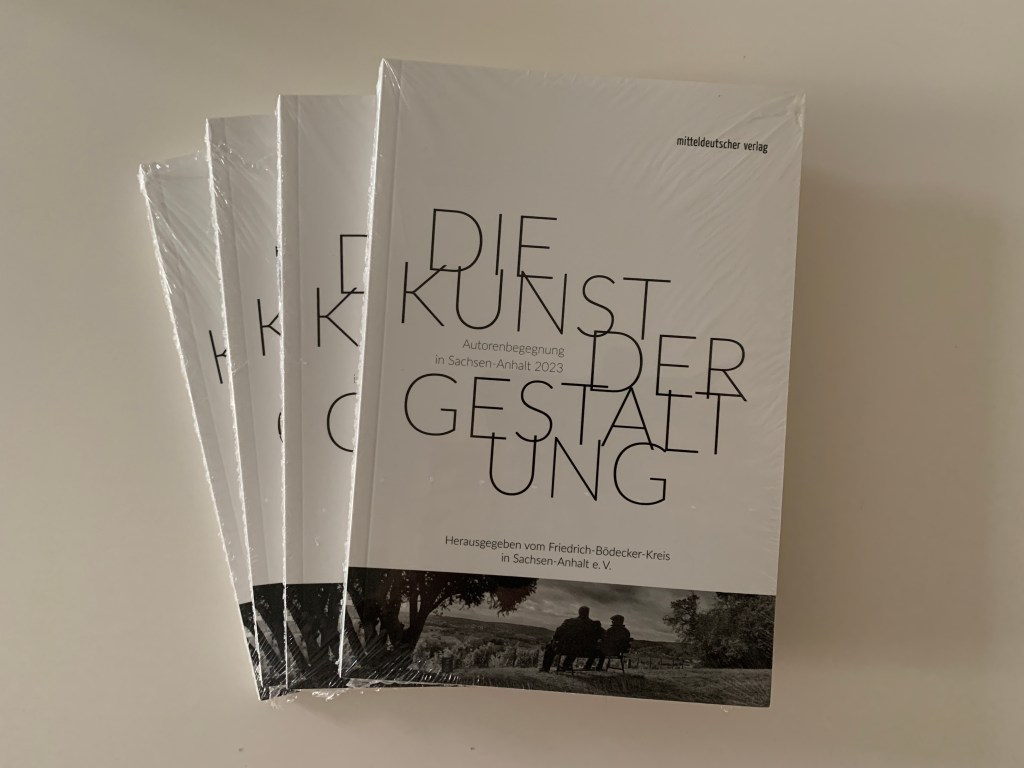 Zwei Gedichte und eine Kurzgeschichte von mir sind in der Anthologie „Die Kunst der Gestaltung. Autorenbegegnung in Sachsen-Anhalt 2023“, herausgegeben vom Friedrich-Bödecker-Kreis in Sachsen-Anhalt e.V. im Mitteldeutschen Verlag erschienen. Ein ganz großes Dankeschön an die Herausgeber, den Verlag und alle befreundeten Autoren und LeserInnen!